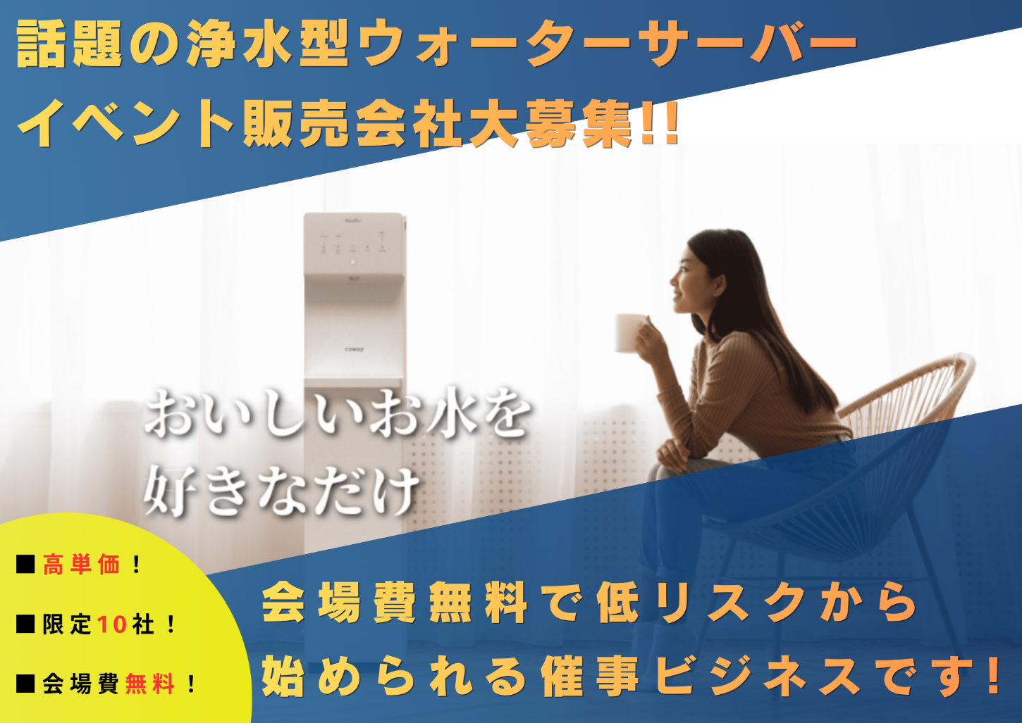 高単価・高品質で安定した収益が見込めるウォーターサーバー商材の代理店募集です。
