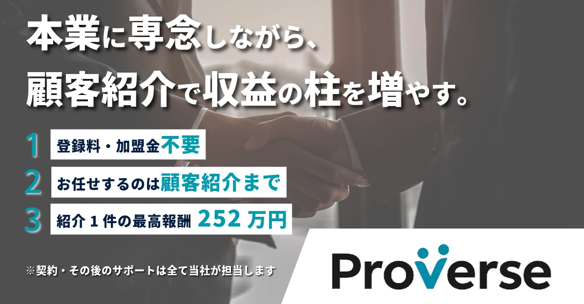 「Proverse」は、リスクなく加盟できるパートナープログラムです。