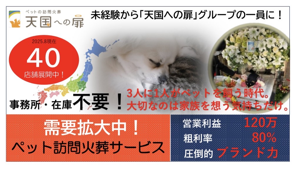 ペットの訪問火葬 天国への扉 のフランチャイズ(FC)加盟募集で独立・開業・起業情報
