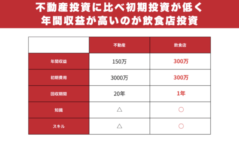 概要欄に記載の通り、不動産投資などをされている方に飲食店投資との比較をお伝えください。