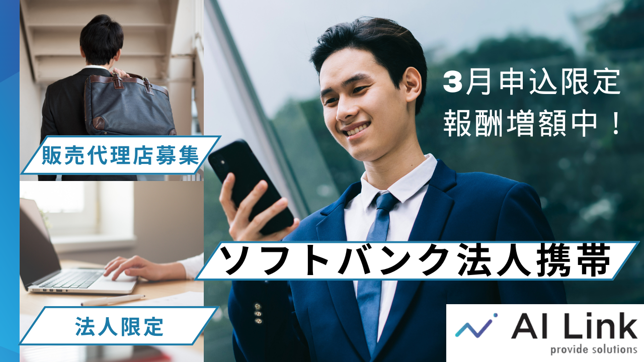 【3月迄の申込限定】代理店 報酬増額中!! ソフトバンク代理店募集