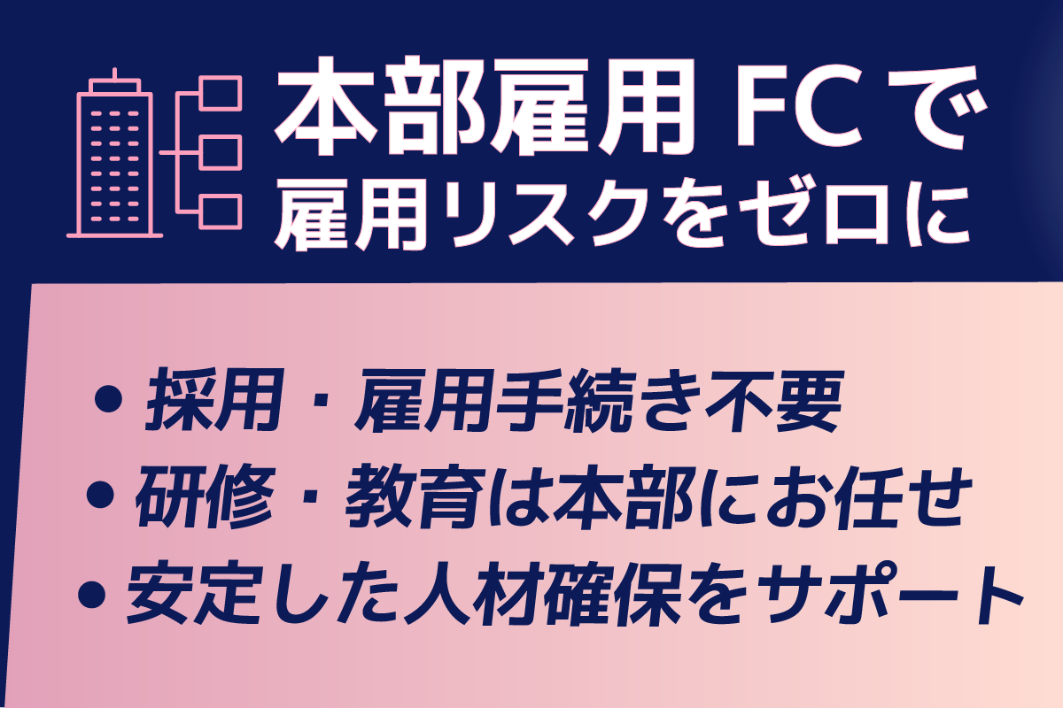 従業員採用を実績の本部担当者が行います。研修制度もしっかりとしており、開業までにプロの技術を身に着けたスタッフを手配できる体制を整えております。